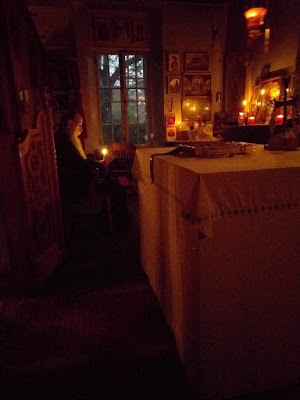 In 2012 he was diagnosed with terminal pancreatic cancer and retired to our hermitage of the Holy Apostles on the coast of Maine, where he spent the next three years in prayer and in composing a paper entitled “The Controversy of the Holy Name on the Holy Mountain in 1912” which the monastery hopes to distribute in the near future. In February of this year he became so sick that he was rushed to the hospital in Boston, where they found his kidney function so low they did not think he would be revived, having blacked out. Yet he did, and they considered it something of a miracle. From then he was forced to return to the monastery in Brookline, where he finished the paper, composed his last will and testament, and then began to decline quickly in November. By the mercy of God he was bed-ridden for only the last week, with fluid in his lungs for the last few days. He is now at rest, with a deeply peaceful expression on his face. The funeral will be held at the monastery on Thursday at 10 a.m.